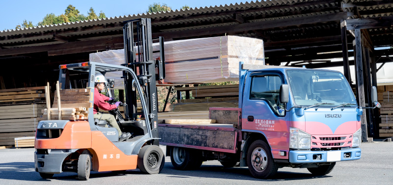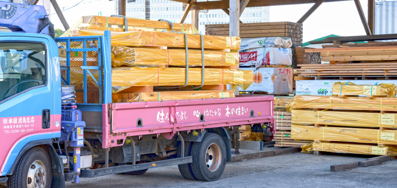 「いますぐに持ってきてほしい」。私たちは、工務店の皆さまからのこうした要望に可能な限り迅速にお応えし、「さすが本田」との評価を得てきました。これができるのも、豊富な在庫を持っていることに加え、全国産地との長年にわたるネットワーク、そして自社製材工場を有しているからです。各店には営業スタッフに加え専門の配送スタッフを配置し、工務店の皆さまの家づくりスケジュールを維持できるよう、急な要望にもフットワーク良く対応し、信頼関係を築いています。