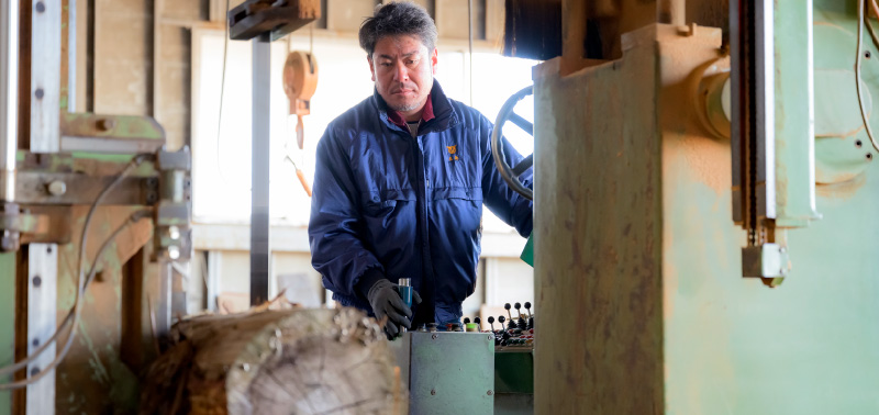 大規模製材機を所有、大木、特殊材、銘木に対応