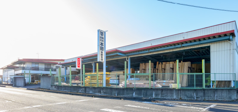 本田発祥の地に位置し、敷地内に製材工場を有していることが最大の特色で、特殊材などの要望に対して迅速に対応、大量一括仕入れによるコストダウンが可能です。本拠地ゆえ日本全国の市場への登録を継続し、あらゆる木材を調達できるという仕入れ力で顧客の信頼に応えてきました。年2回の展示会には、毎回300社以上が来場。工務店、一般問わず「気軽に相談できる材木屋」を目指しています。