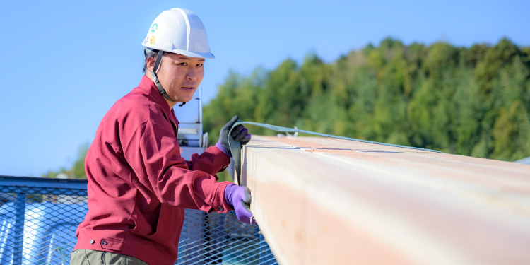 伐採した木をそのまま切り出してつくった天然の無垢材に対して、複数の板を結合させた人工の木材で、厳格な規格と検査基準をもとに品質管理され、強度と安定性があり、柱や梁などの構造材にも使われます。